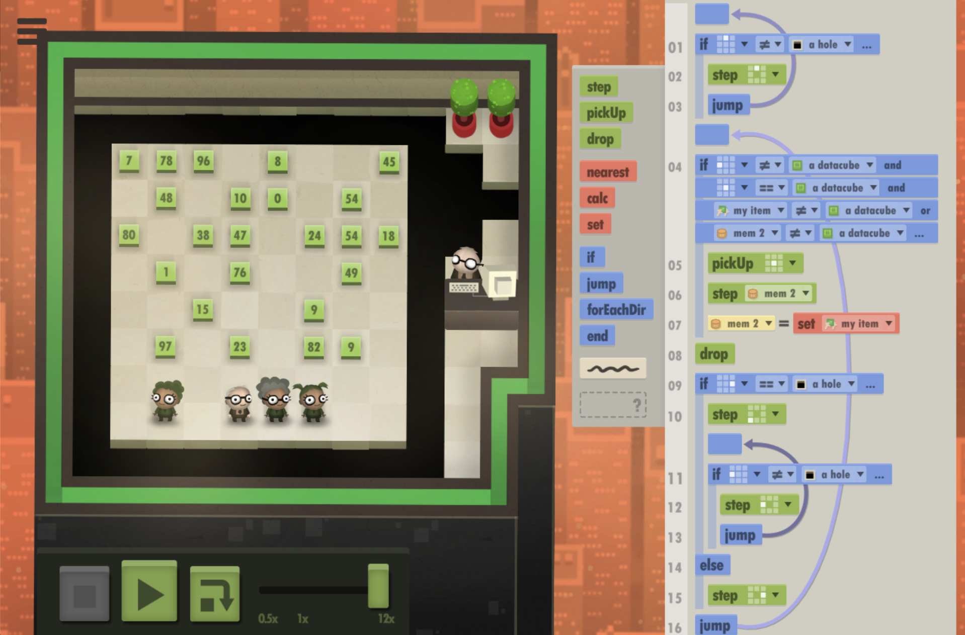 | 7 Billion Humans | my solution to the final optional level - 65: Defrag Ordered.