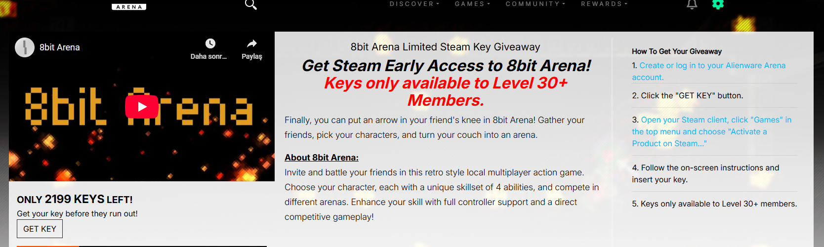 Giveaways Community Giveaways Arena Arcade BETA Quests Steam Events